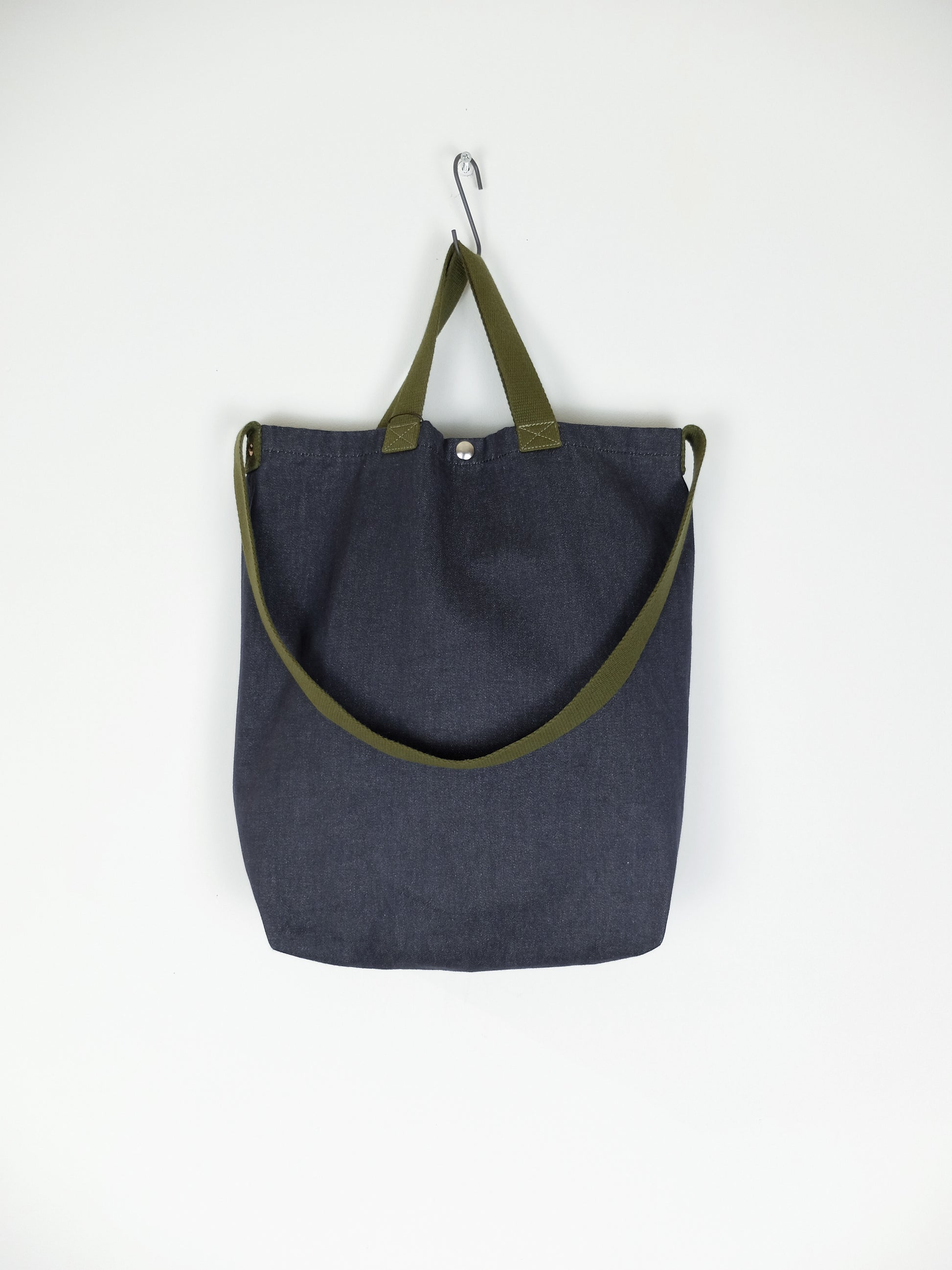Cette nouvelle version du tote bag est confectionnée dans un denim tissé en France et avec une bandoulière 100% coton. Il est conçu pour être porté en bandoulière ou à la main. A l'intérieur, vous trouverez une poche zippée et il se ferme par un bouton pression.